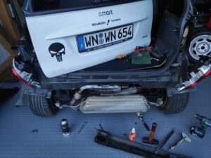 Zusätzlich knallt mir am Vorabend zur vierten OP in Essen bei der Anreise eine 24 jährige Astronautin an einer Kreuzung mit Ihrem Golf 7 auf meinen an der Ampel stehenden Smart drauf.