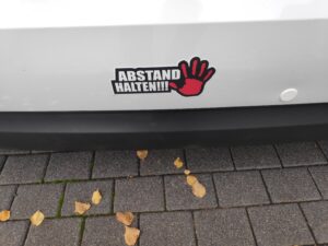 Da kam alles zusammen. Wegen der Parkplatznot in Essen bin ich nicht mit dem großen 2,5 Tonnen SUV angereist, sondern mit dem kleinen, rollenden Handgepäck, meinem Smart. Ich hab’s mal anhand der Flugbahn der Gegenstände zurück gerechnet, sie hatte mehr als 20 km/h drauf. Das ist für einen Heckaufprall bei so einem kleinen Auto heftig. Warum? die Kräfte auf die Insassen verteilen sich im Verhältnis der Massen. Also bekommt der Smart von hinten in einer Zehntelsekunde eine Aufprallkraft des Golf von 4 Tonnen in den Hintern gedrückt.